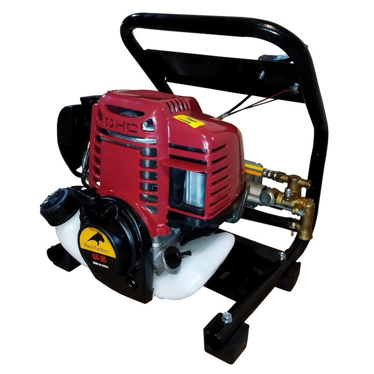 سمپاش موتوری پرتابل چهارزمانه زمانه بلک پنتر به دلیل وزن مناسب، حمل و نقل راحت، قیمت پایین، کاربری ساده، پاشش قوی، موتور بنزینی، تعمیر و نگهداری آسان، سرعت بالا در پاشش، بازدهی بالا و عمر طولانی در بین باغداران و کشاورزان دارای محبوبیت می باشد. از این دستگاه می توانید در باغات و گلخانه ها برای ضد عفونی و از بین بردن آفات استفاده کنید. این مدل سمپاش از دسته سمپاش های پرتابل است، که در مقیاس کوچکتر قرار دارد، به همین دلیل دارای وزن کمتری هستند و حمل و نقل را برای کاربران راحت کرده اند. سمپاش موتوری پرتابل مدل PNB-PP350 دارای سوخت بنزین بوده که توان بالا و وزن پایین از ویژگی های بارز آن به حساب می آید. که همین امر جابجایی را برای اپراتور راحت تر کرده است. حجم سیلندر موتور سمپاش پرتابل 26 سی سی است و این میزان برای سمپاشی در باغات و گلخانه ها مناسب می باشد. فشار ثابت در سمپاش این امکان را به شما می دهد تا بتوانید آن را به بوم و نازل مجهز نمایید و در مزارع و باغات از آن استفاده کنید.