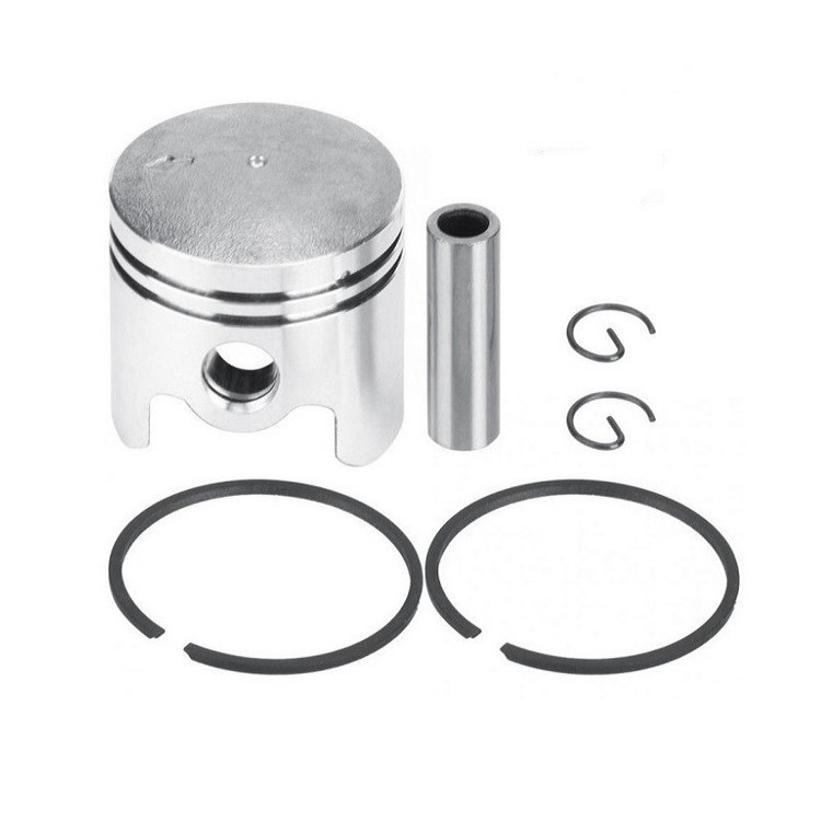 رینگ پیستون علف زن دو زمانه (مدل های مختلف) در قطرهای مختلف، جهت علفزن های متفاوت می باشد، و پیستون علفزن های دو زمانه، دارای دو عدد رینگ می باشد. رینگ ها حلقه هایی فلزی از جنس چدن خاکستری می باشند، که روی شیارهای موجود در پیستون قرار می گیرند. چدن خاکستری، فلزی است که در برابر گرما حساسیت کمی دارد، و بسیار مقاوم است، و دارای قابلیت ارتجاعی خوبی نیز می باشد. از رینگ پیستون برای آب بندی استفاده می شود. در واقع رینگ ها مانع خروج سوخت و هوای فشرده و گازهای محترق شده از بین سیلندر و پیستون می شوند. رینگ ها باید به راحتی در شیار پیستون قرار بگیرند، و جای حرکت داشته باشند، این لقی رینگ ها به وسیله ی فیلر اندازه گیری می شود. و تقریبا 0.03 میلیمتر به ازای هر سانتیمتر قطر سیلندر می باشد. این مجموعه 6 عددی مناسب علفتراش 620 می باشد .