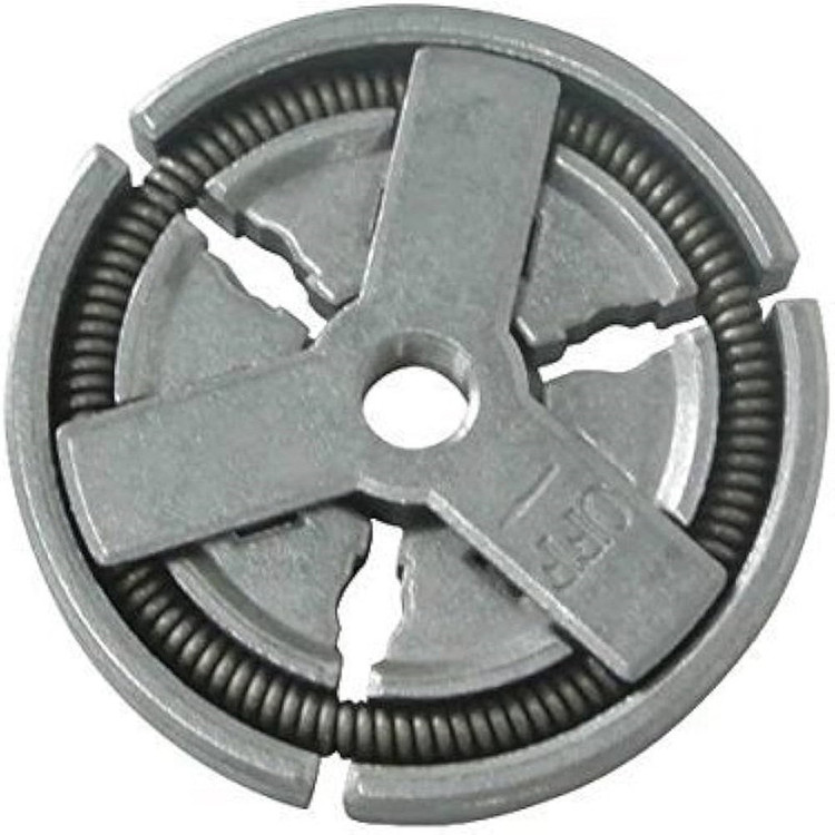 مجموعه کلاچ یکی از قطعات اصلی در اره موتوری است. اپراتور به کمک کلاچ به راحتی عملیات برش را با کنترل عالی به انجام رساند. کلاچ در واقع مسئول کنترل انتقال توان میان موتور و شفت برش است. وقتی که کاربر دستگاه را موقتا خاموش میکند، کلاچ موتور از شفت برش جدا شده و به کاربر اجازه میدهد تا بتواند شفت برش را به صورت دستی حرکت دهد. با فشردن دسته دستگاه، کلاچ باز میشود و موتور با شفت برش ارتباط برقرار میکند و برای انجام برش به کار میرود. مجموعه کلاچ در واقع شامل چندین قطعهی کوچکتر است که با کارکرد صحیح، به کنترل انتقال قدرت کمک میکنند و به کاربر توان کنترل کاملی بر روی دستگاه برش میدهند.
