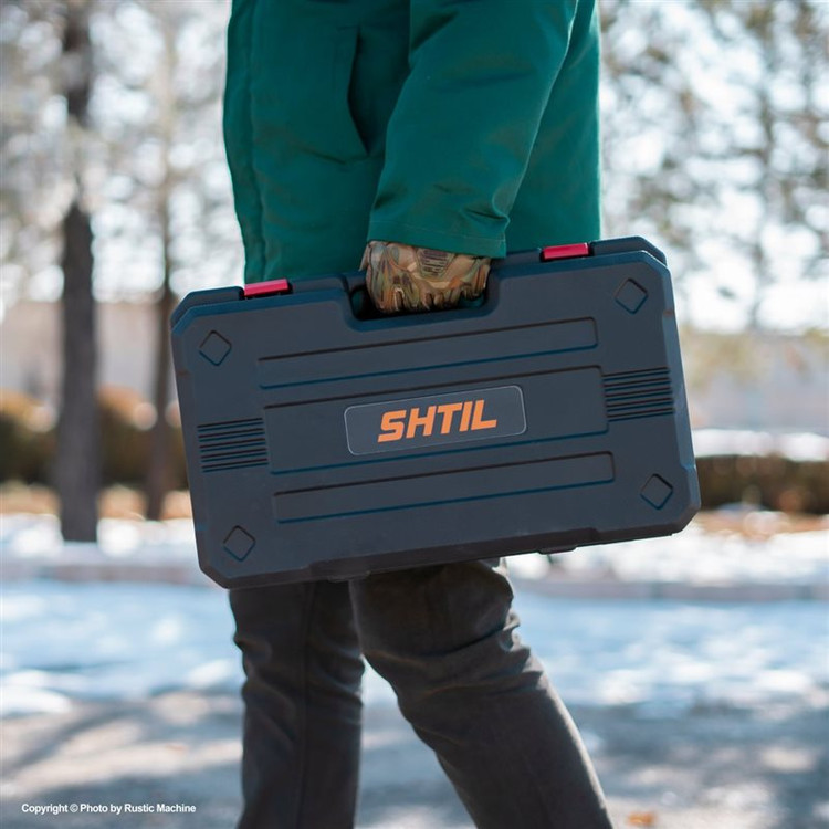 کیف حمل این محصول از نوع BMC درجه یک است. مزیت این کیف نسبت به محصولات دیگر بازار این است که دستگاه به صورت مونتاژ شده همراه با زنجیر و ساطوری در آن جا میشود و نیازی نیست در پایان کار ساطوری و زنجیر را از روی دستگاه باز کنید.