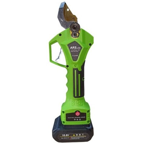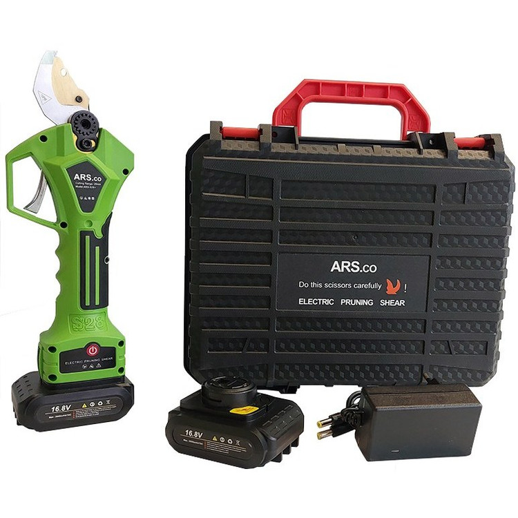 - قیچی هرس شارژی مدل ARS-S28PLUS از بهترین قیچیهای هرس شارژی است که با استفاده از تکنولوژی ژاپن رضایت کامل کاربران را فراهم نموده است. این قیچی مجهز به تیغههای تیتانیم سخت کاری شده SK5 است که به راحتی شاخههای تا قطر 28 میلی متر را هرس میکند. موتور این دستگاه از نوع پیشرفته براشلس بوده است. باتری لیتیومی این قیچی 16.8 ولت 2600 میلی آمپر ساعت است و با استفاده از شارژر سریع هم زمان دو باتری در دو ساعت و نیم شارژ و با باتریهای شارژ شده 10 ساعت کار مداوم امکان پذیر است.