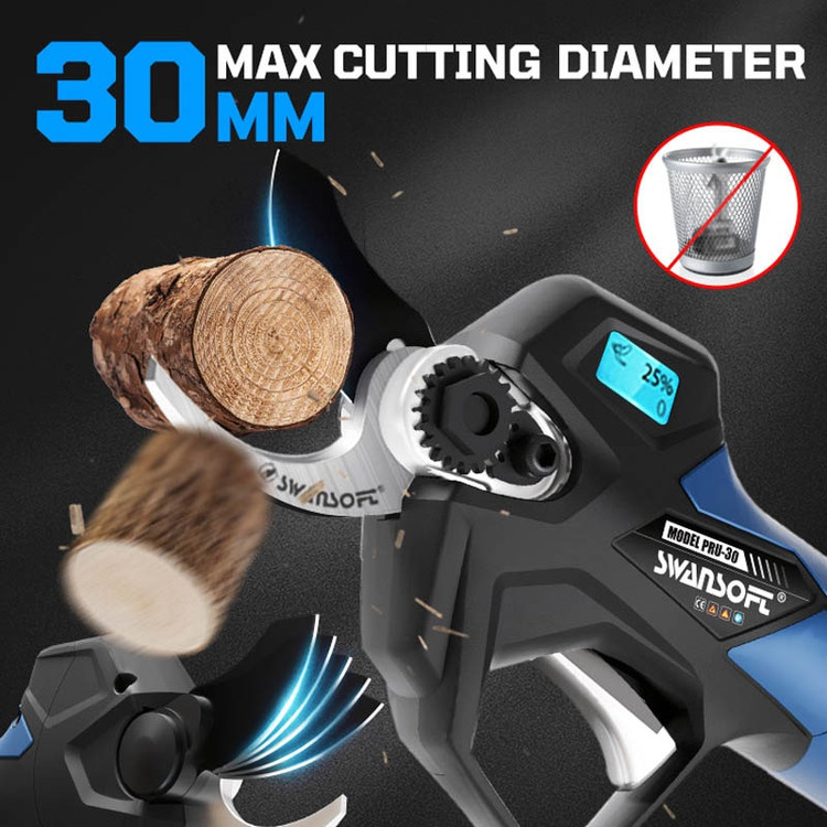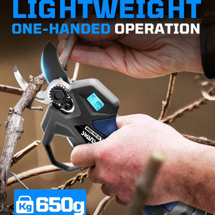 قیچی هرس شارژی SWANSOFT PRU-30 (سوآن سافت) یکی از جدیدترین و کارآمدترین ابزارهای باغبانی این برند معتبر است. این مدل با موتور براشلس 850 واتی (Brushless) طراحی شده و قابلیت برش شاخههایی تا قطر 30 میلیمتر را دارد.